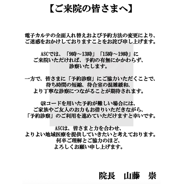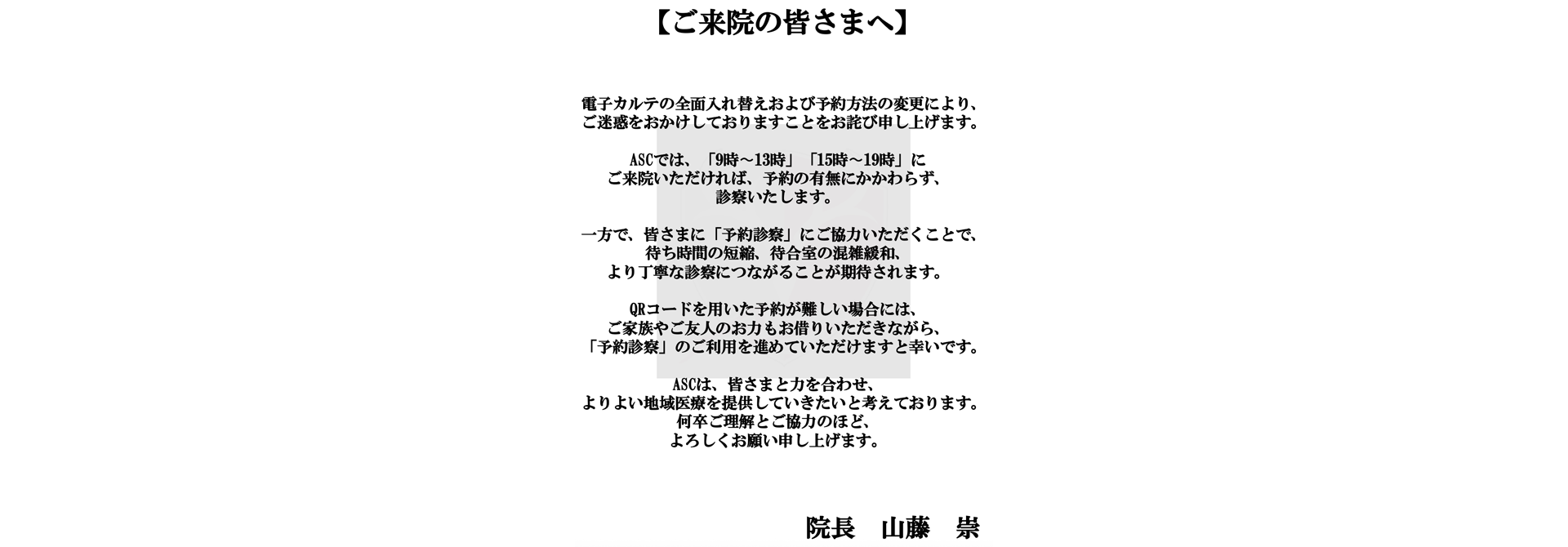 診療時間・受付時間当クリニックは予約の方を優先して診療を行っています