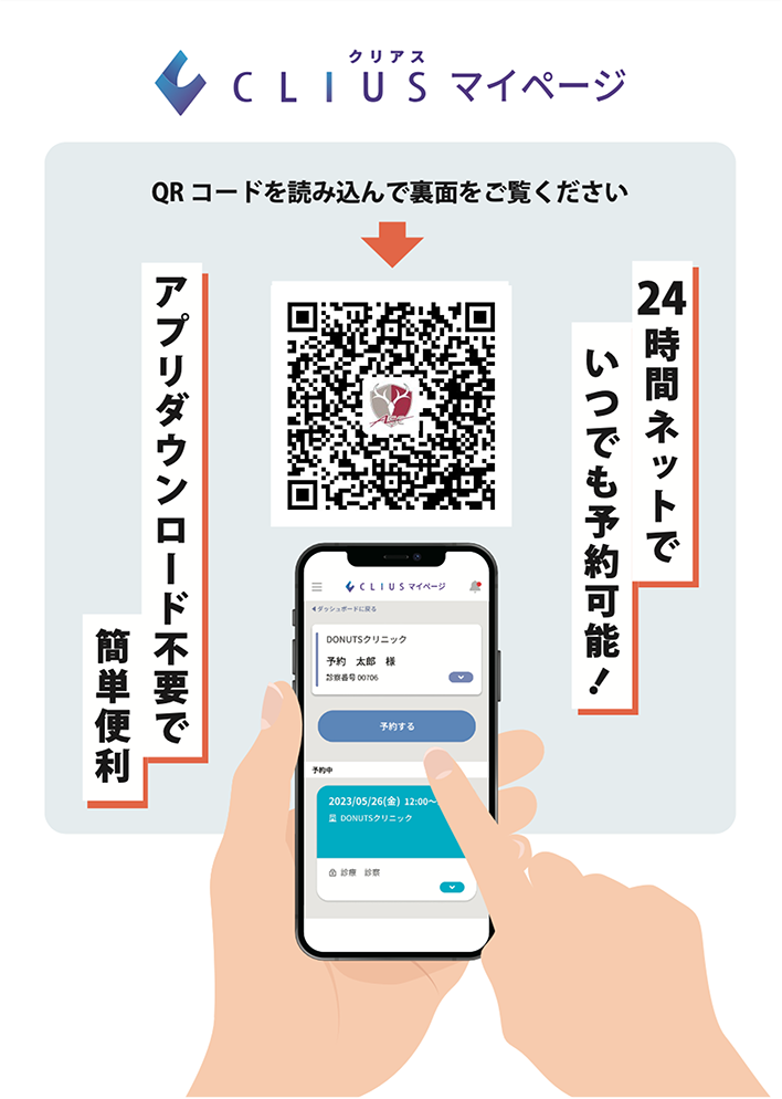 当院では2026年4月1日(水)よりオンライン予約システムを「CLIUS(クリアス)」へ変更いたしました。